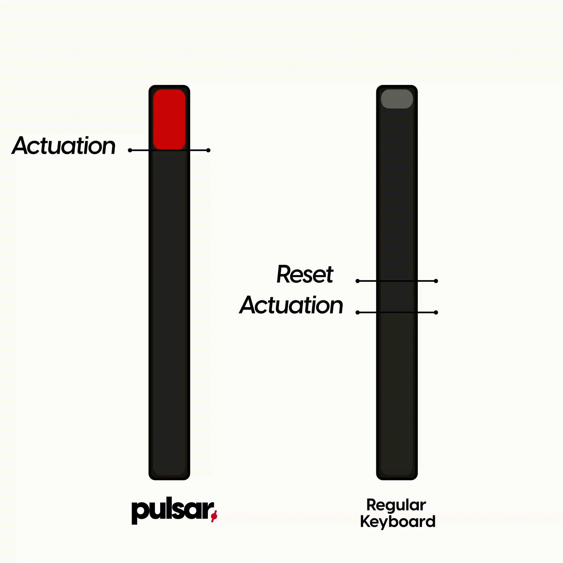 Las teclas se activan de forma inmediata al presionarlas y se desactivan rápidamente al soltarlas, lo que permite entradas ultrarrápidas.