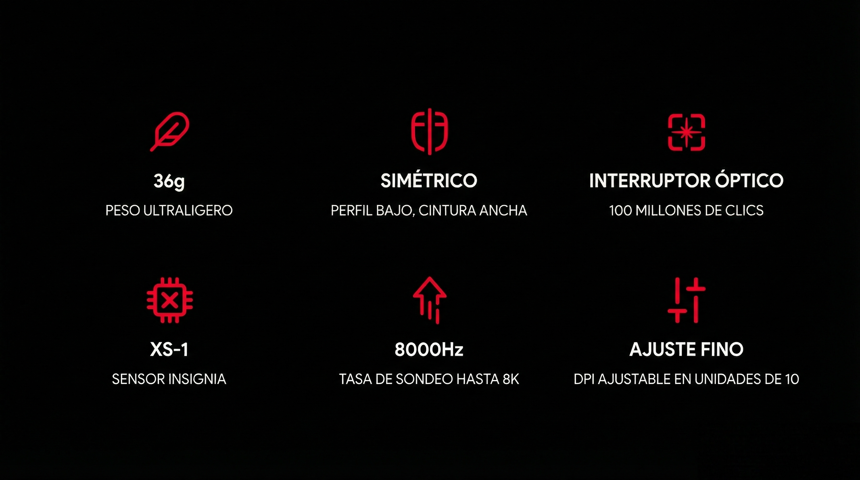 El sensor XS-1, exclusivo de Pulsar, presume una impresionante resolución de 32.000 DPI, una velocidad de seguimiento de 750 IPS y una aceleración de 50g, brindando una precisión y velocidad sin igual.