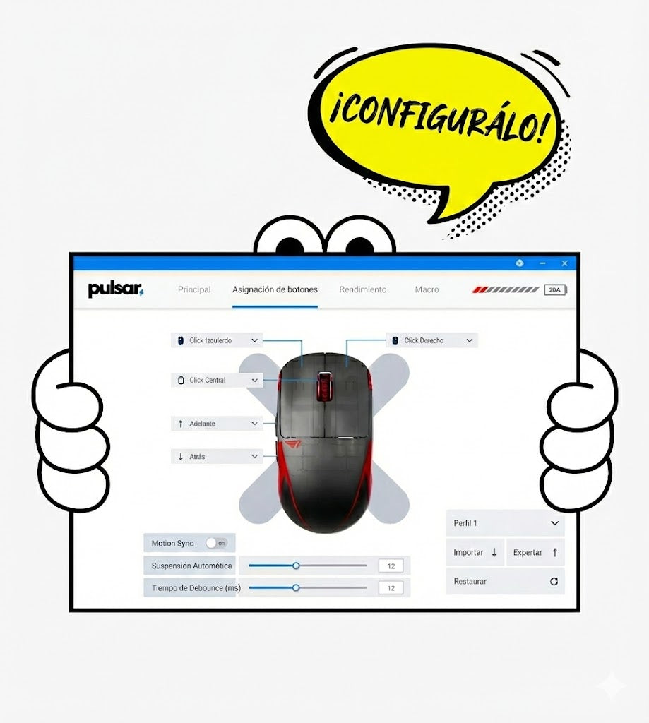 Con el software dedicado del X2 CrazyLight, podés ajustar los DPI, la tasa de sondeo y las funciones de los botones con total facilidad. Es una herramienta súper intuitiva diseñada para ayudarte a optimizar tu mouse y lograr una jugabilidad fluida y de respuesta inmediata.