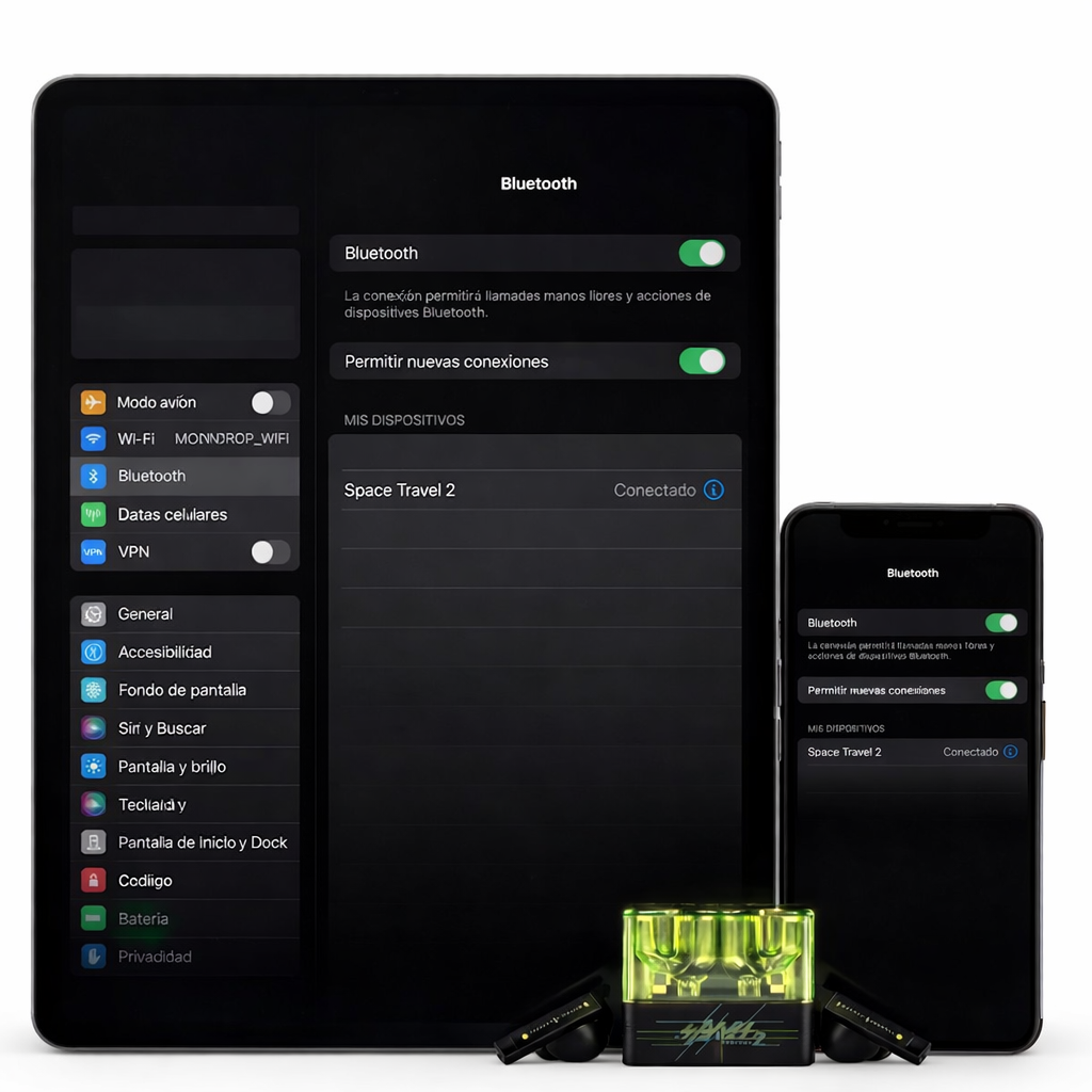 SPACE TRAVEL 2 ofrece conectividad dual, lo que permite conectar dos dispositivos simultáneamente. Los usuarios pueden cambiar fácilmente entre dispositivos a través de la aplicación, lo que proporciona una experiencia fluida y cómoda.